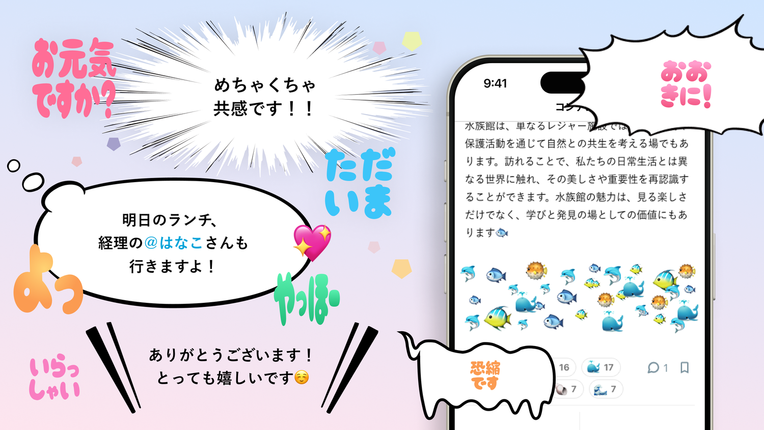 また、もじ絵以外にもオンライン上で感情や思いを楽しく表現することができる工夫を随所に施すことで、オンライン上での交流体験が楽しくなったり、ユーザー同士の仲が深まるきっかけを作り出すことができるプロダクト開発に努めます。