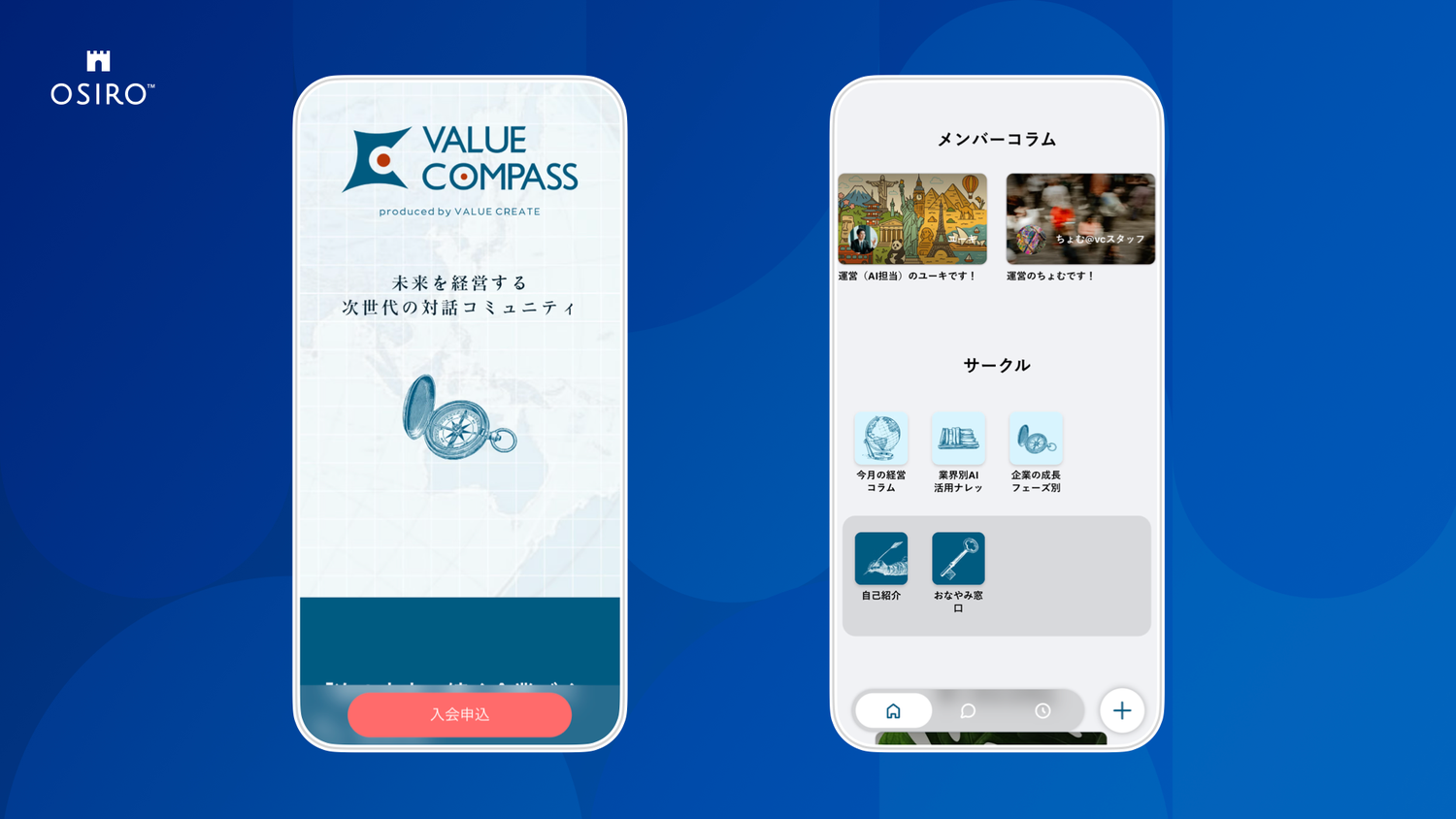 コミュニティ専用オウンドプラットフォーム「OSIRO」を提供するオシロ株式会社(本社:東京都渋谷区、代表取締役社長:杉山 博一、以下 オシロ)は、株式会社バリュークリエイトに「OSIRO」の提供を開始。2025年4月14日にオンラインコミュニティ「バリューコンパス」がオープンしました。