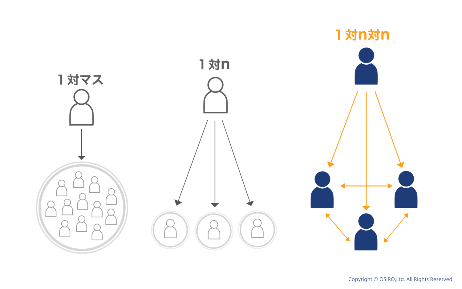 「1対n対n」の関係性が成り立っている場所を「オンラインコミュニティ」と定義しています。コミュニティの話題でしばしば耳にするこの「1対n対n」とは、どのような意味なのでしょうか?