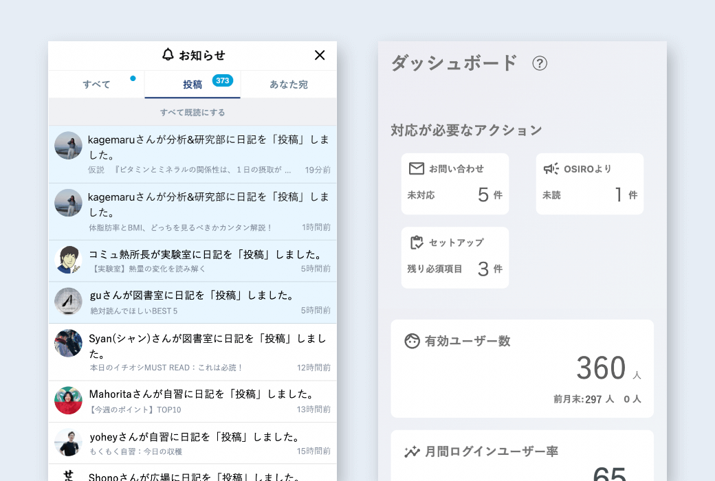コミュニティ運営を追究するオシロのもう一つの強みは、データ分析機能の充実です。