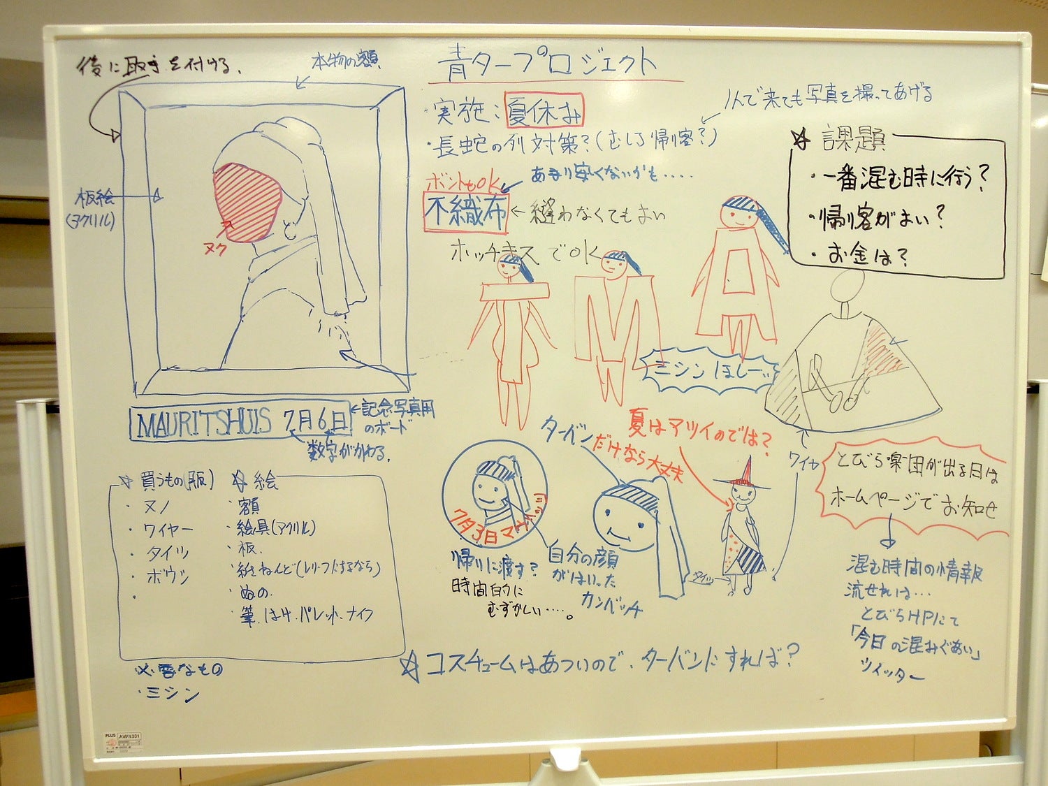03_青ターWB.JPG 2.77 MB東京都美術館×東京藝術大学「とびらプロジェクト」とびラー(アート・コミュニケータ)が自主的に開催するミーティング「とびラボ」で使用したホワイトボード(2012年)