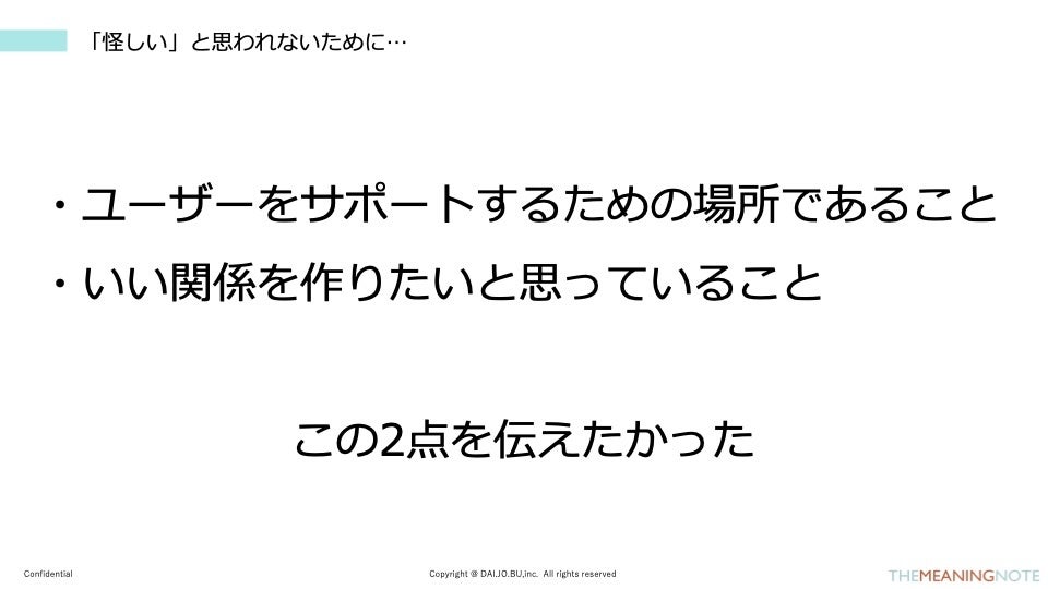 しかし、山田さんはコミュニティの立ち上げにも不安を覚えていたといいます。それはコミュニティを立ち上げたことで、むしろ多くの人から「怪しい」と思われてしまうことへの懸念でした。