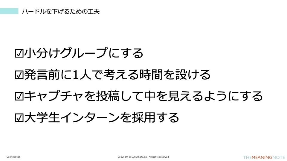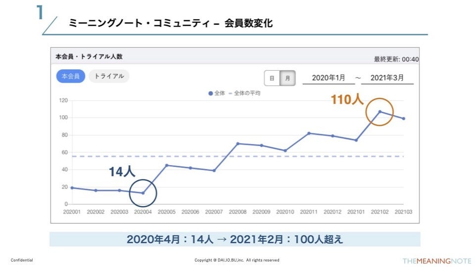 こうして2020年4月に「ミーニング・ノートコミュニティ」がスタートしましたが、最初期はメンバー14名と、当初予定の30名を下回る人数でした。しかし、山田さんはそこから