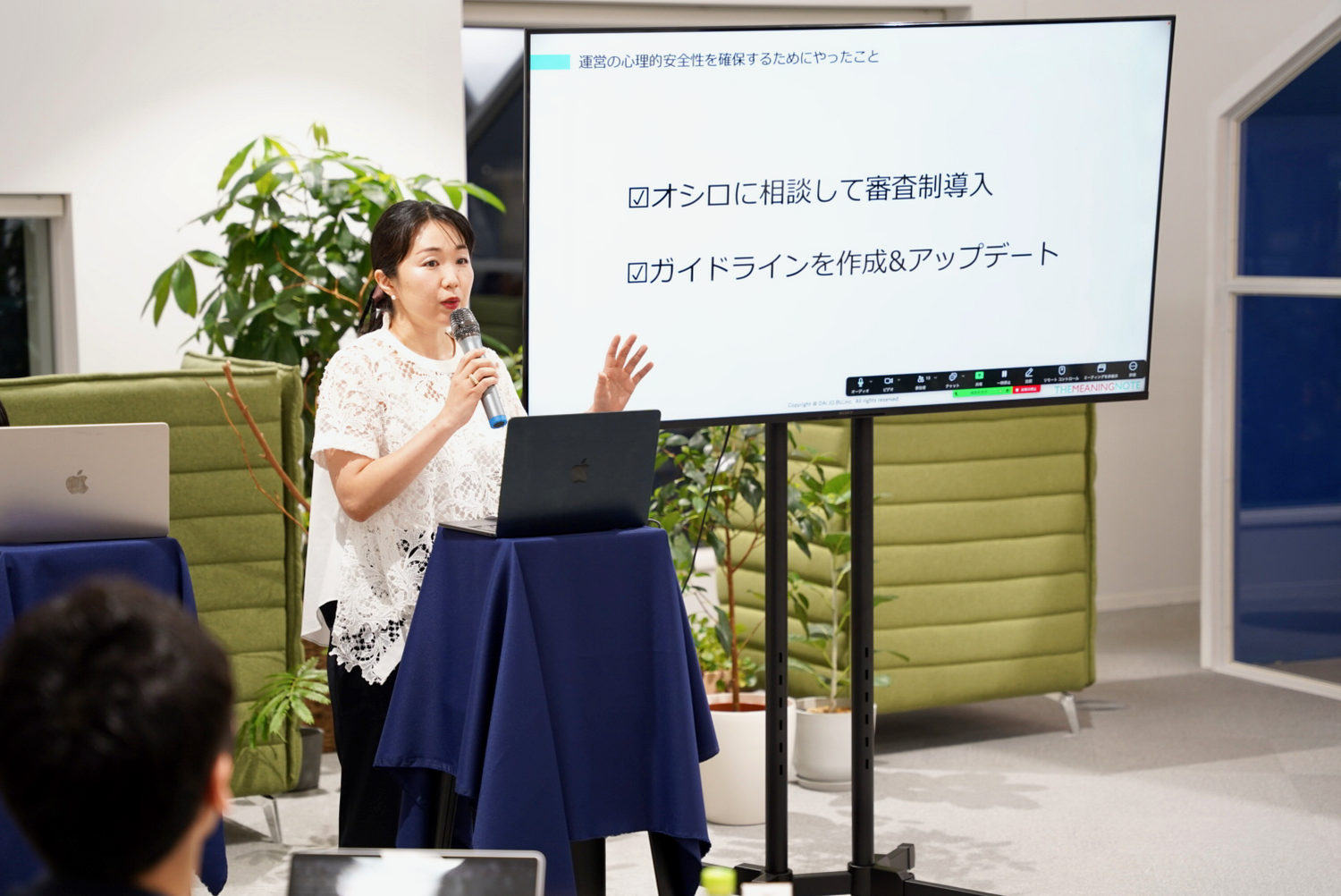ガイドラインは最初から完璧なものをつくることはできず、後から追加しなければならない事項は必ず出てきます。ただ、ガイドラインを途中で変えるのは、私としてもコミュニティメンバーにもストレスがかかることです。そのため、今ではガイドラインが変更になる可能性があることを事前に周知するようにしていて、お互いの合意が合った上でアップデートするようにしています」