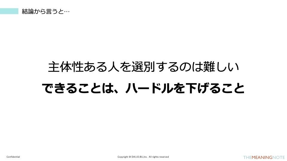 メンバーに主体性があるのかを選別するのは非常に難しいです。そのため、まずは