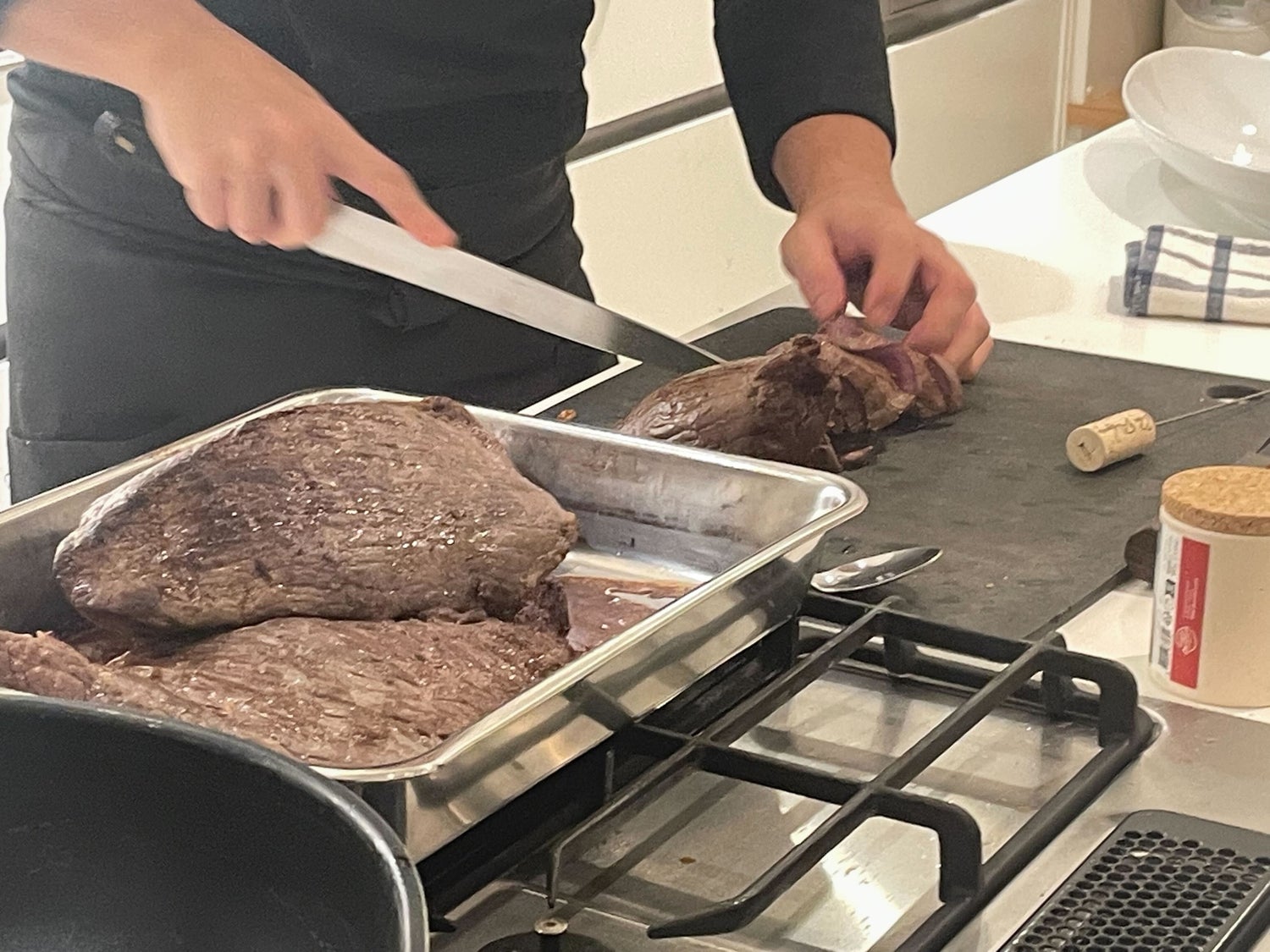 オフラインミーティングは12:00からのスタート。イベントではえもじょわさんがつくった「牛ほほ肉の赤ワイン煮込み」と「サン・セバスティアンのバスクチーズケーキ」のほか、フランスでの修行経験を持つシェフ2名によりケータリングも振る舞われました。