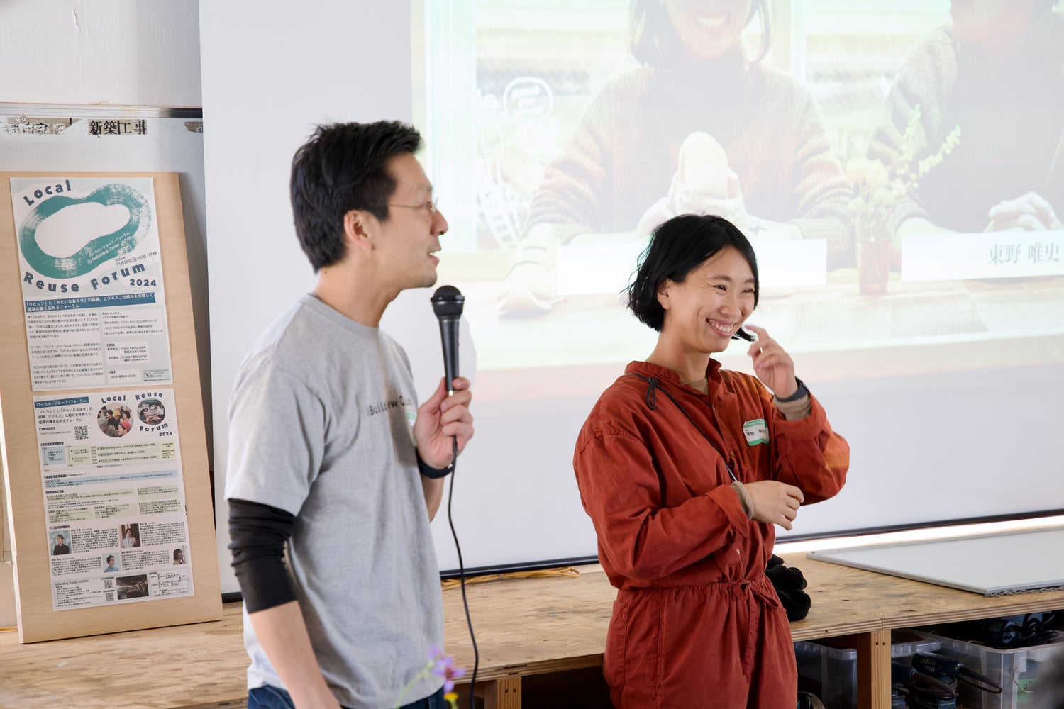 DSC01559.jpeg 1.9 MB 「Local Reuse Forum」開会の挨拶をする唯史さんと華南子さん フォーラムは冒頭、唯史さんと華南子さんによる開会のあいさつが述べられた後、唯史さんによるリビセンの成り立ちや取り組みを紹介する講演が行われました。