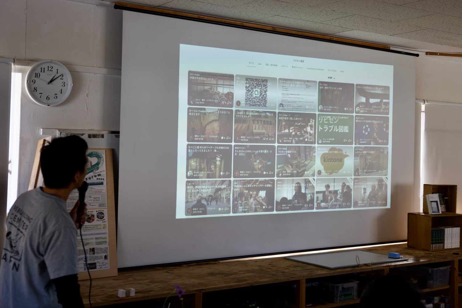 DSC01634.jpeg 1.83 MB 「Local Reuse Collective」のコンテンツ投稿画面を投影しながらコミュニティについて説明する唯史さん 「Local Reuse Collectiveでは、納品したものの紹介やレスキューで使っている道具などを公開し、より具体的で参考にしてもらいやすいコンテンツをアップしています。また、リビセンでは毎月『GoodJobMeeting』という売上速報などを社内に共有する時間を設けていますが、それもオンラインで一緒に視聴できるようにしています。