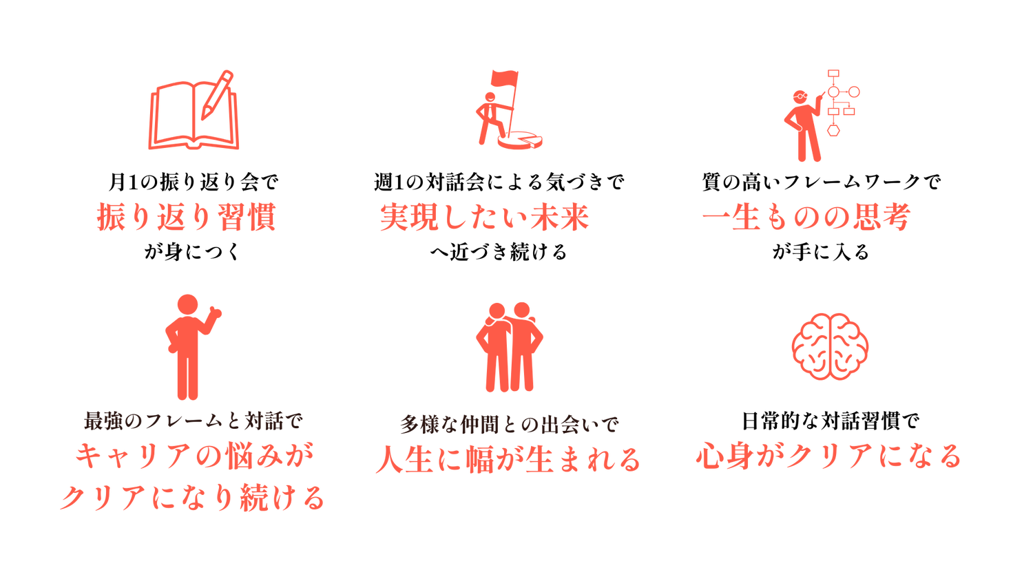 10年間で5万人以上へワークショップを提供してきた、NO WALLs株式会社代表高橋さんが厳選したフレームワークを軸にキャリアの悩みを、日常的に解決することができます。