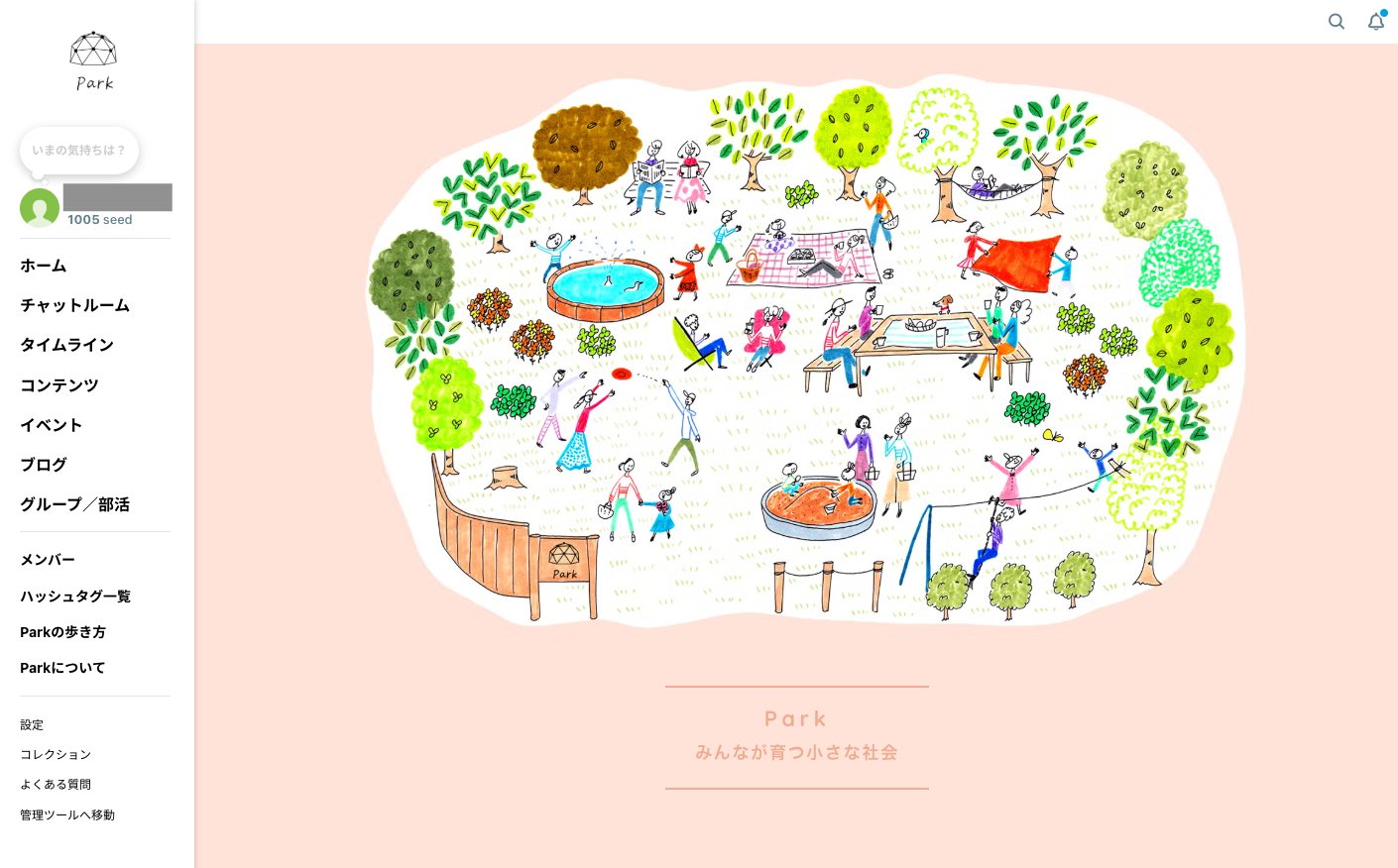 Park みんなが育つ小さな社会 「自分をもっと楽しもう 共に育ち合う輪を広げよう」をコンセプトに、モンテッソーリ教師あきえさんが2021年3月に創設したオンラインコミュニティ。「こどもが尊重される社会を作る」という思いに共感したメンバーが集まる。セミナー形式の講義だけでなく、メンバー同士の交流や部活動、イベントなどコミュニティ内での交流から子育てや教育について共に「学び合い、話し合い、共創する場」となっている。 Parkコミュニティサイト