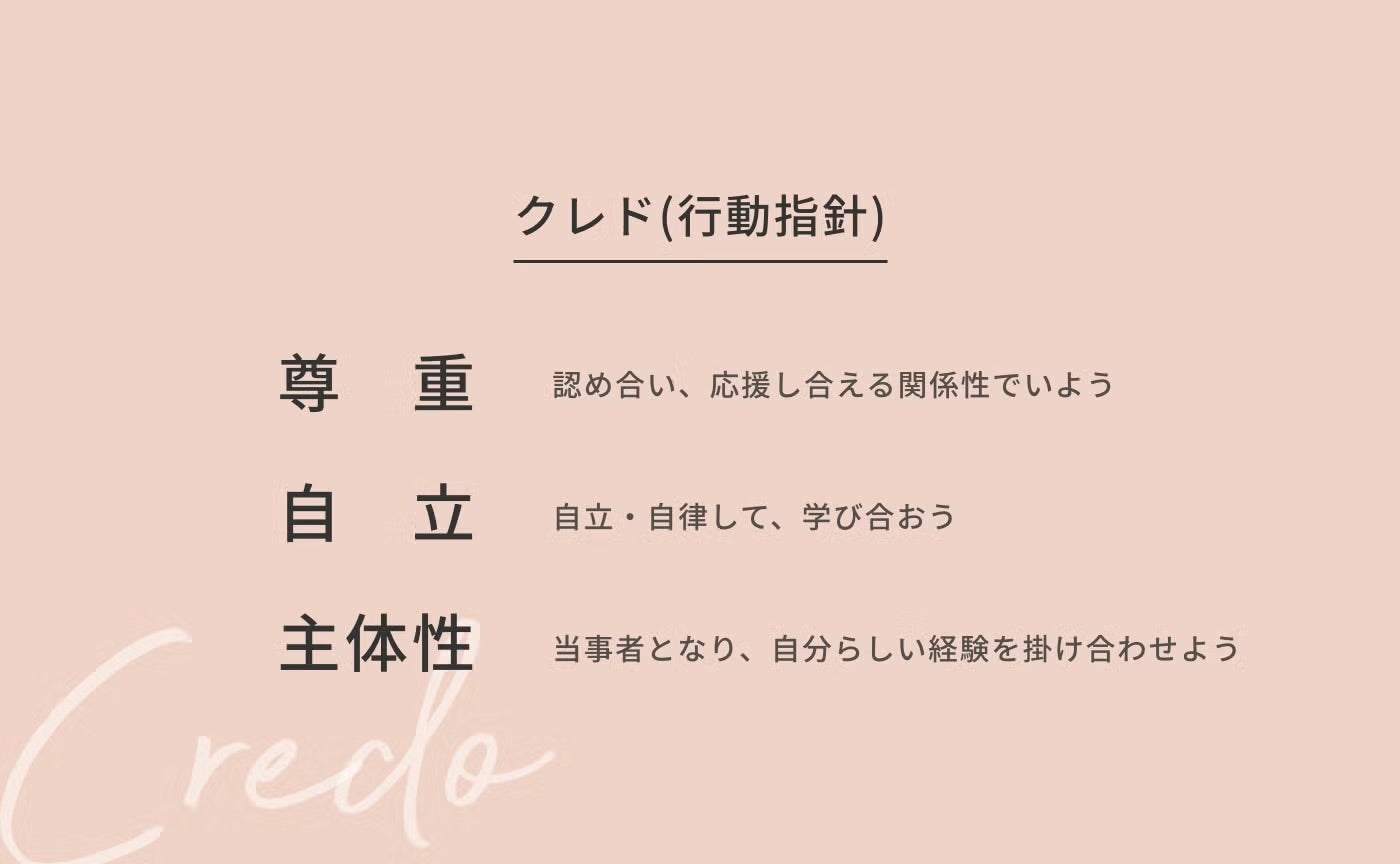 ※ダンバー数: 人間が安定した社会関係を維持できる認知的な限界人数のこと。イギリスの生物学者・人類学者のロビン・ダンバーが提唱し、おおよそ100から200名ほどであるとされている。 Parkが掲げるクレド.jpeg 70.3 KB Parkが掲げるクレド(提供:Park) 松本: はなこさんとMadokaさんはどのようなきっかけでParkに入会しようと思ったのでしょうか?