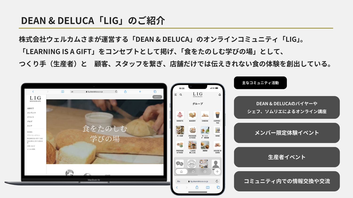 オンラインコミュニティ「LIG DEAN & DELUCA」を運営するDEAN & DELUCAの事例をお聞きするウェビナー「DEAN & DELUCAが取り組む『顧客ロイヤル化施策」を聞く〜顧客の『本音』が聞けるコミュニティ運営とは?〜」が開催されました。