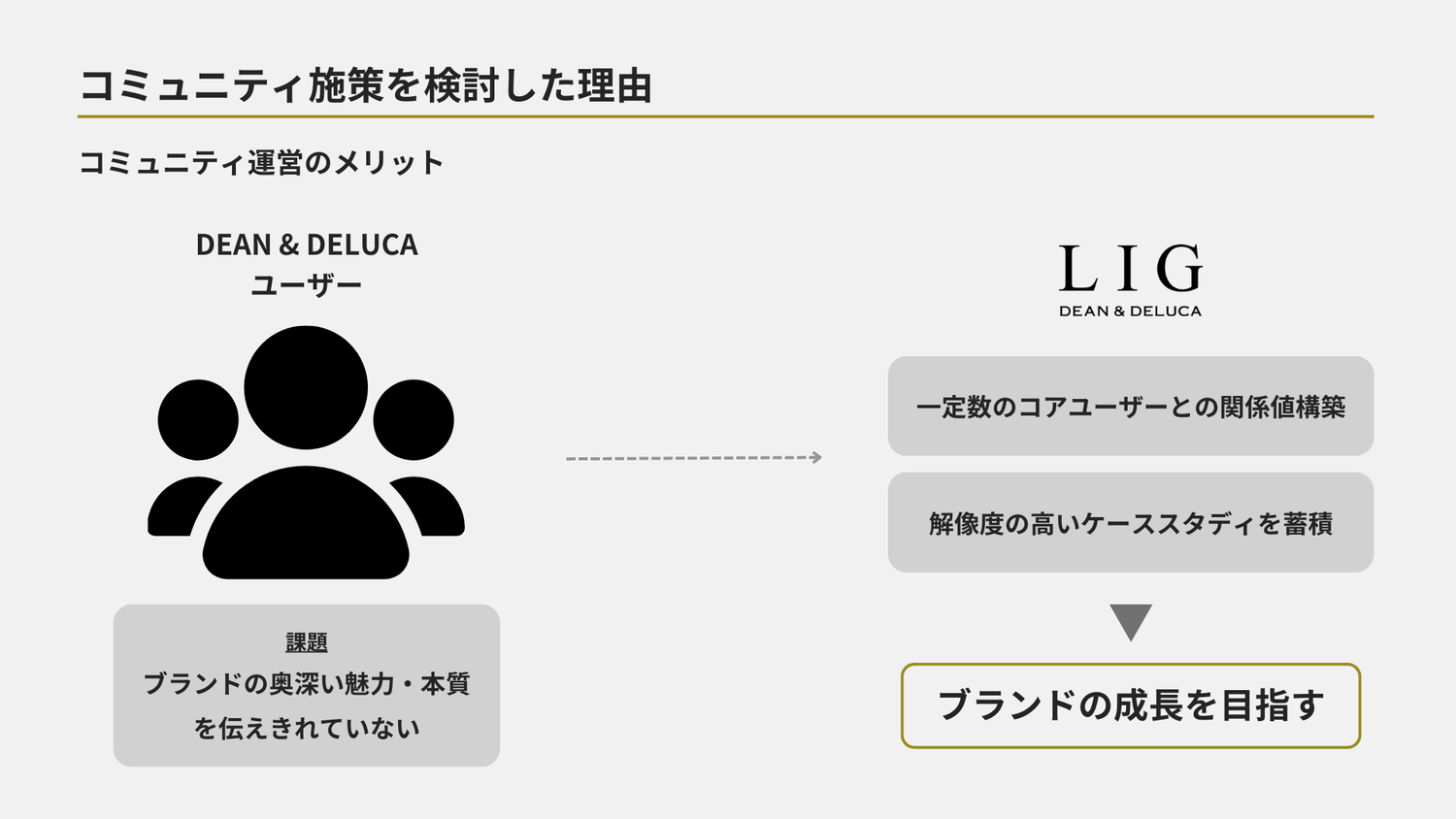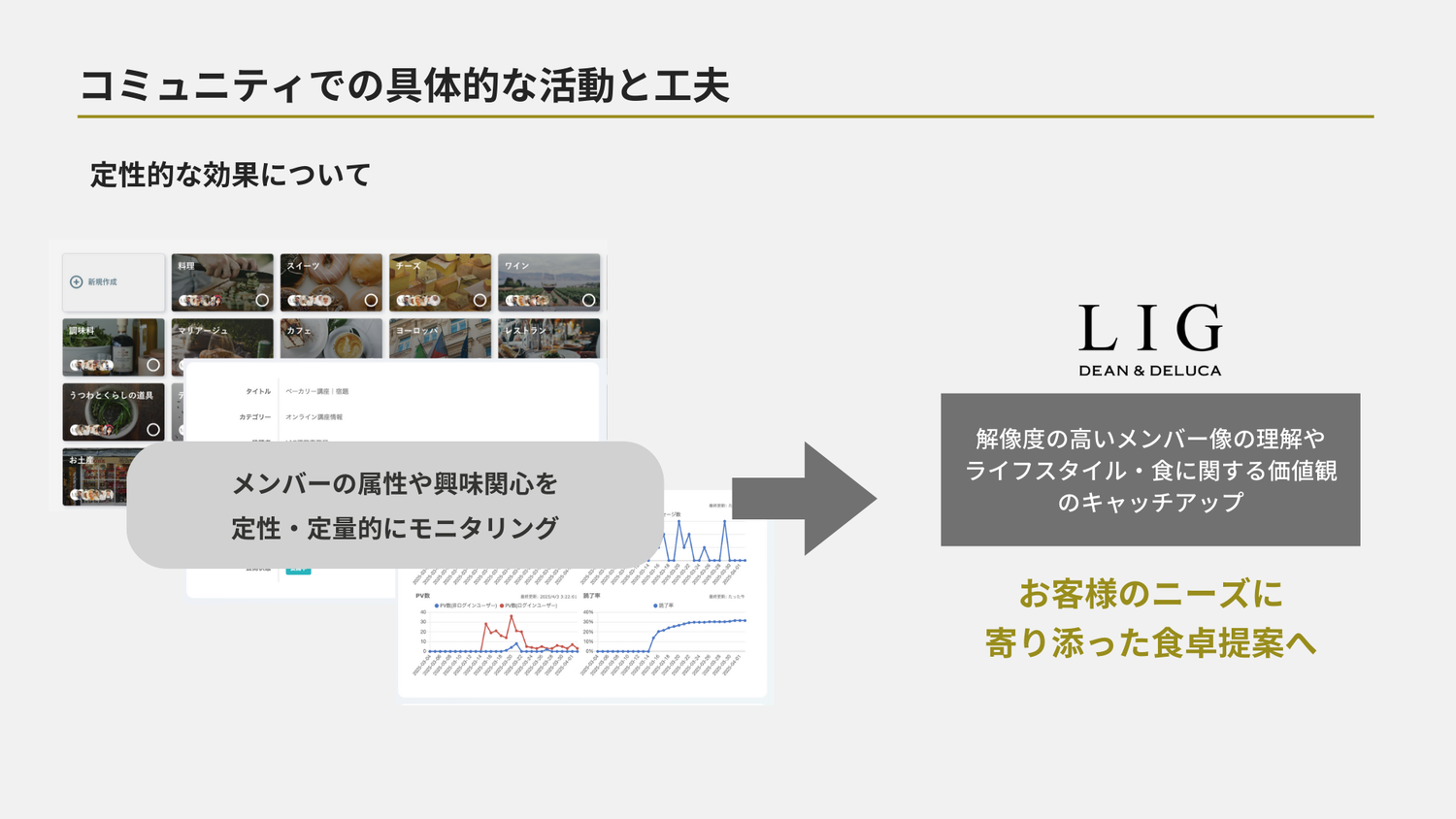 定性的な部分では、当初LIGはDEAN & DELUCAのコアなファンであるロイヤル顧客の皆さまの声を直接お伺いする場として立ち上げたものでしたが、