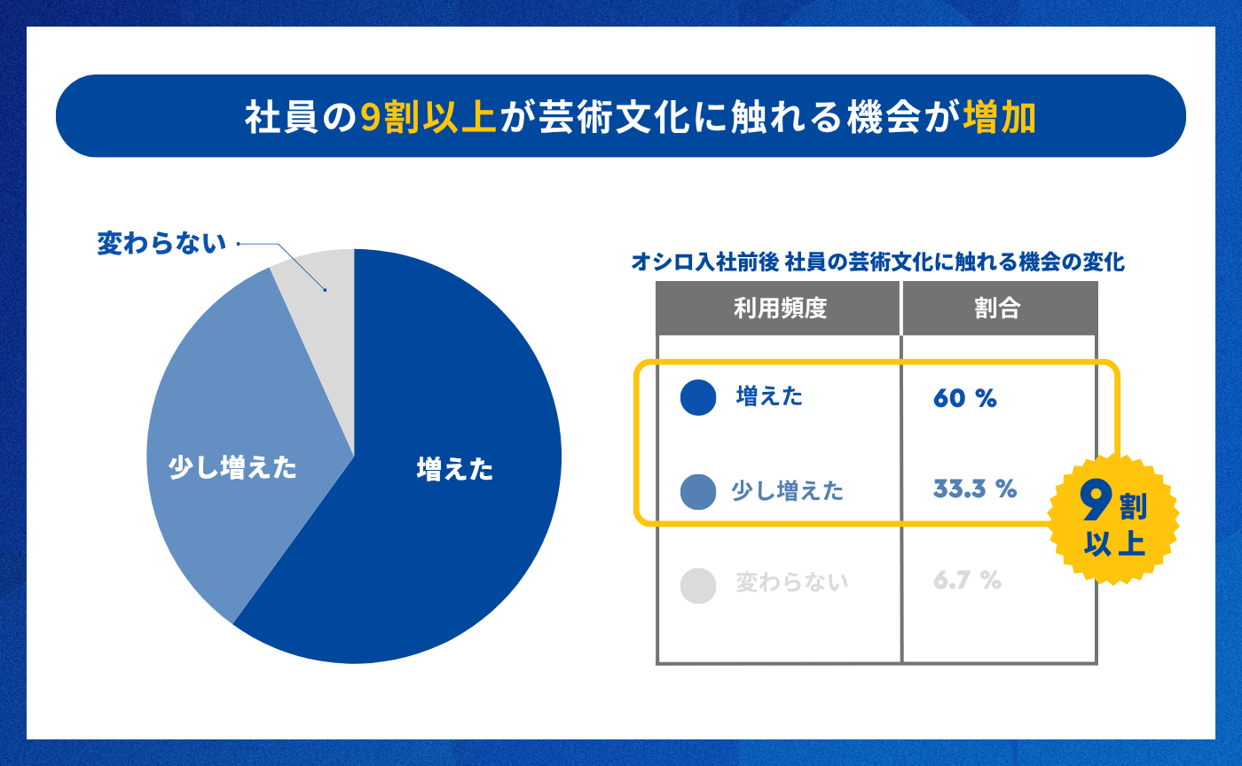 約93%の社員がオシロ入社前後(芸術給があること)で芸術文化に触れる機会が増えたと回答 しました。