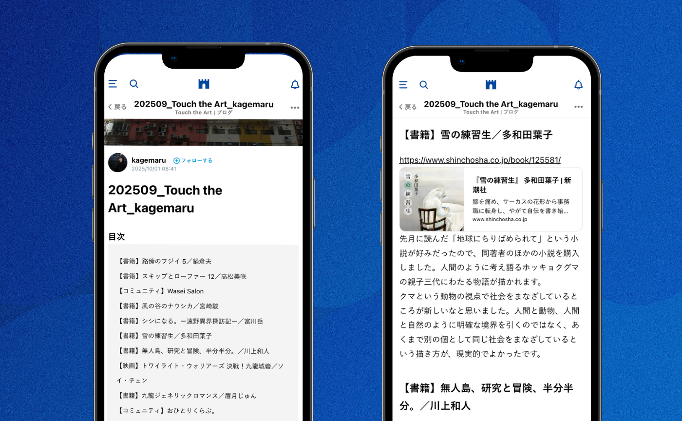 社内で「Touch the Art」したものを紹介しあう文化 これまで紹介した「芸術給」は非常に幅広いジャンルで利用されている制度ですが、利用する際に1点ルールがあります。それは、社内コミュニティサイトでレポートを書いて投稿し、今月自分が触れた芸術文化(Touch the Art)を皆に共有することです。