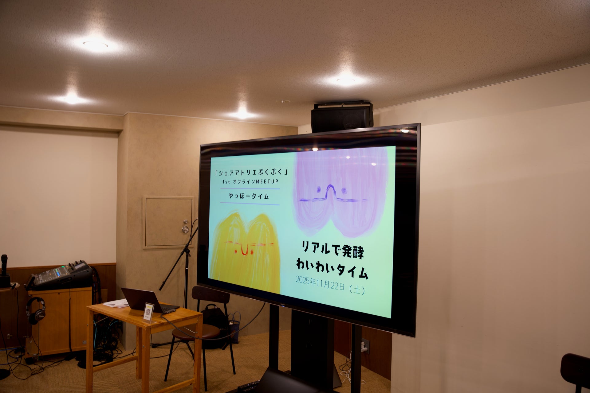 そんな鈴木さんの思いがかたちになった場が、オンラインコミュニティ「シェアアトリエぷくぷく」です。この日開催された『1st オフラインMEET UP「やっほータイム」』は、まさに鈴木さんが思い描いた世界観を体現するイベントとなっていました。