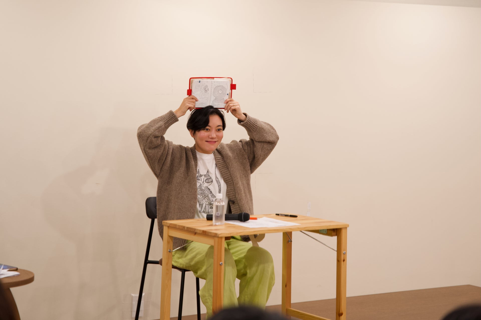 DSC02840.jpeg 7.96 MB発表のあとは、参加者から鈴木さんに向けての質問コーナー。ここでは「なぜ2016年の元日から『いちにちいちまい』を始めたのですか?」や「ほぼ日手帳を使い始めたきっかけは?」などの質問があり、一つひとつの質問に鈴木さんが丁寧に回答しました。
