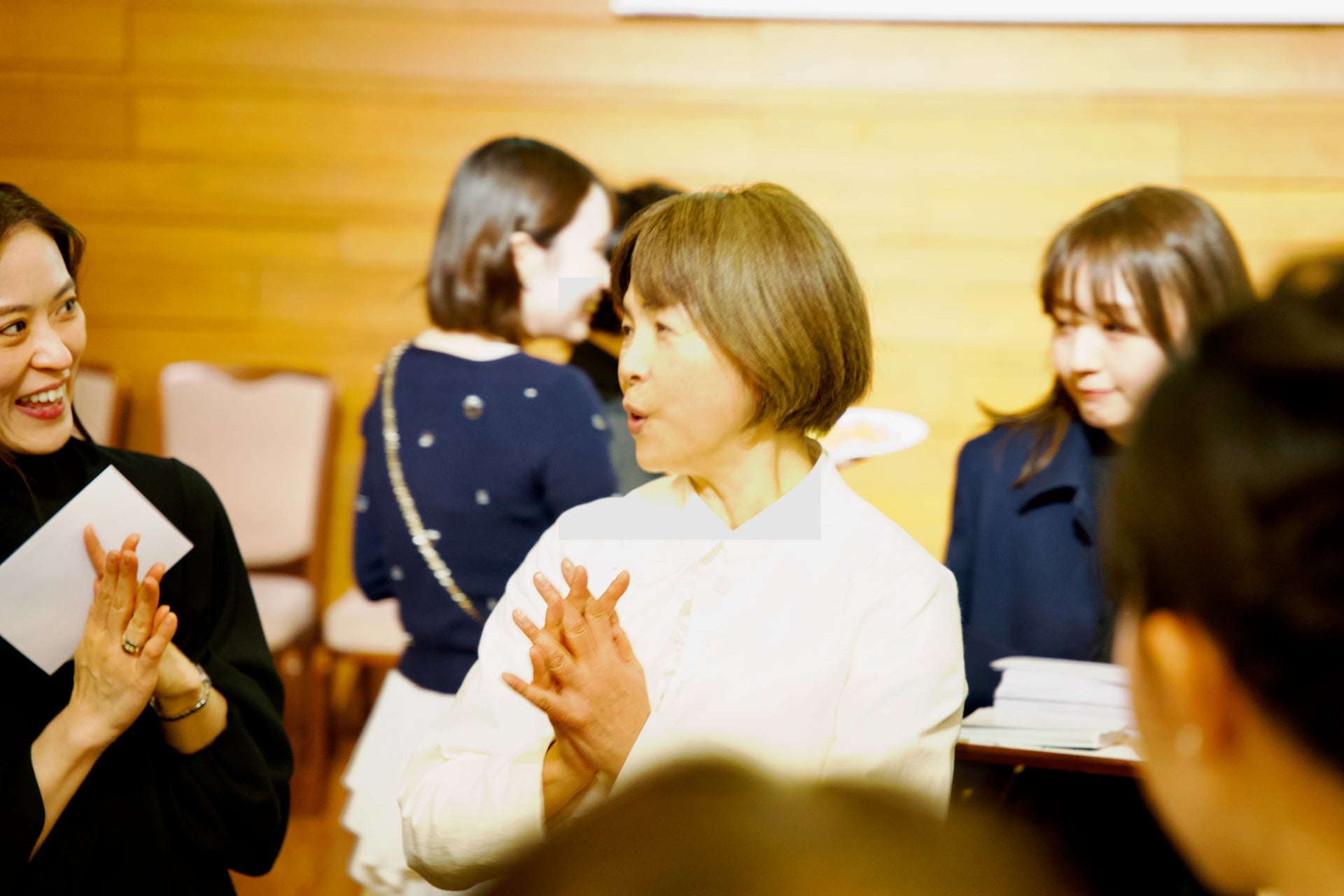 IMG_DF1F634F900D-1.jpeg 2.5 MBマハさんの直筆メッセージ入りポストカード(Sallysの氏名にはぼかし加工を施しています)マハさんによるこれ以上ないプレゼントに、会場はさらに活気づきます。それぞれのテーブルにマハさんが来て、Sallysの名前を呼び、ポストカードを手渡し会話をする。