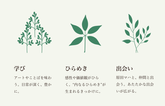 「Mahalíque」で叶う3つのこと.png 80.6 KB1. 学び・原田マハのアート講座(月1回)