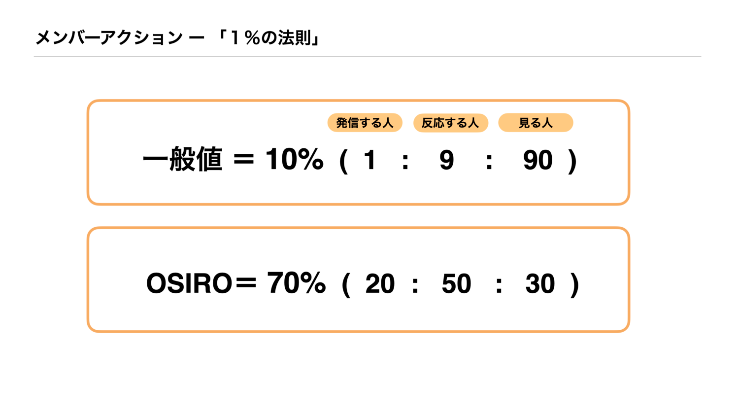 ▲「1%の法則」が示す一般値とOSIROユーザーコミュニティのメンバーアクションの比較