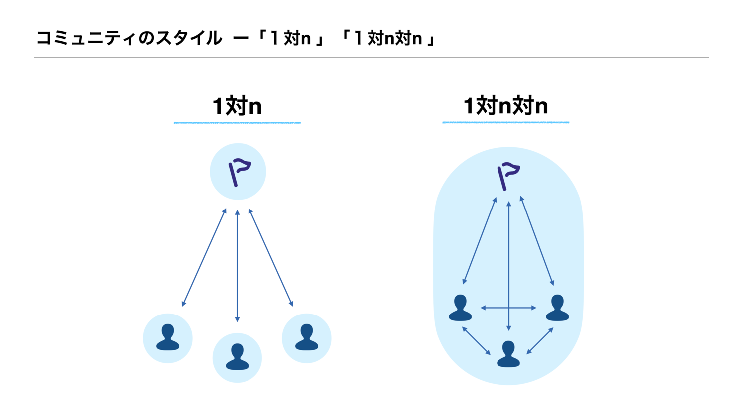 「1対n対n」 とは何か、コミュニティのスタイルを示した下の図を見ながら詳しく説明します。