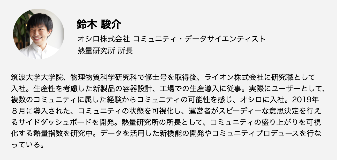 オンラインコミュニティの実態を、データサイエンティスト視点から様々な切り口で大解説する「コミュニティ熱量研究所」、 所長の鈴木です。