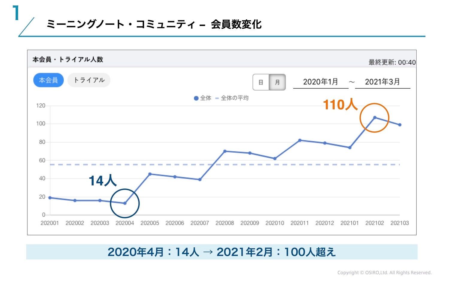 これが実際のミーニングノートコミュニティの人数変化です。(参照:上の図1)