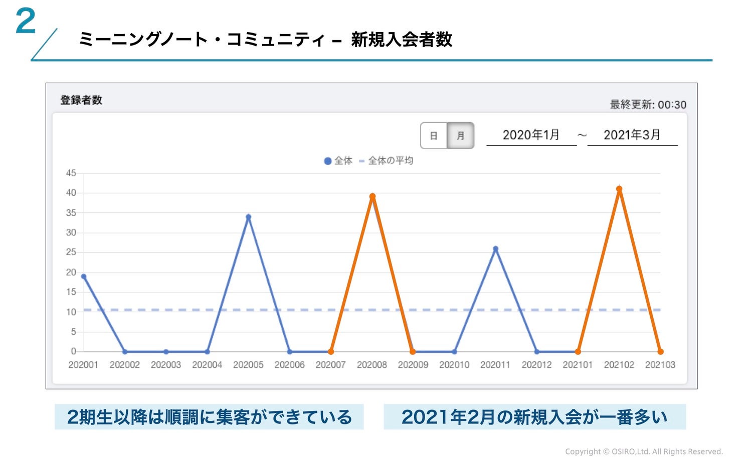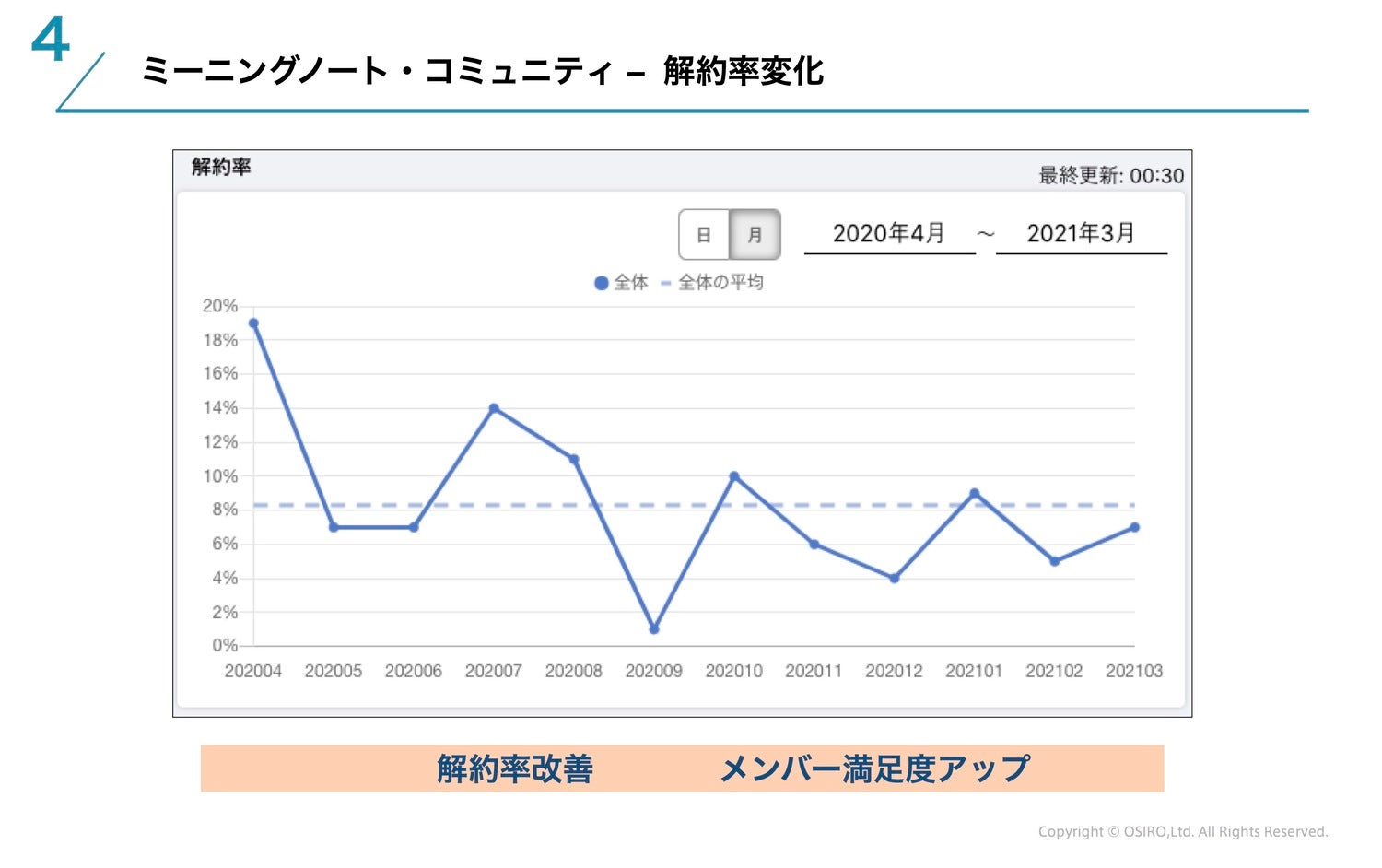 鈴木:あと、先程の解約率の話で言えば、オシロのデータとして「最初の入会1・2ヶ月が一番辞めやすい時期」というのがあるんです。