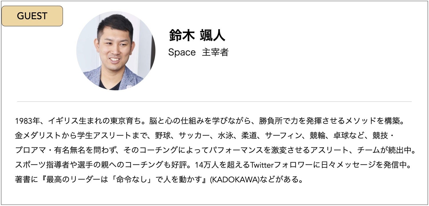 "メンタルコーチング"を軸に、スポーツに携わる全ての人が各々の目標に向けての達成プロセスをサポートしていくコミュニティ「Space」主宰者 鈴木颯人氏。