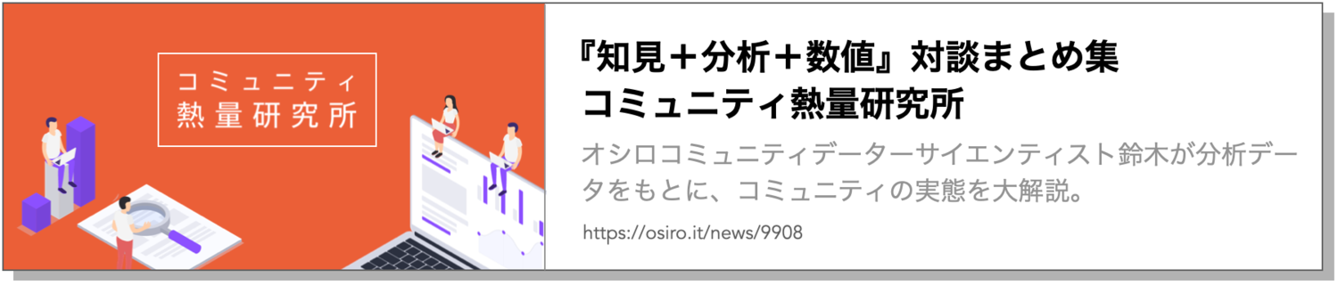 オシロデータサイエンティスト鈴木が分析データをもとに、コミュニティの実態を大解説するシリーズ「コミュニティ熱量研究所」、1回、2回ともに80人以上の方にご参加頂いた対談イベント、第3弾の開催が決定いたしました!