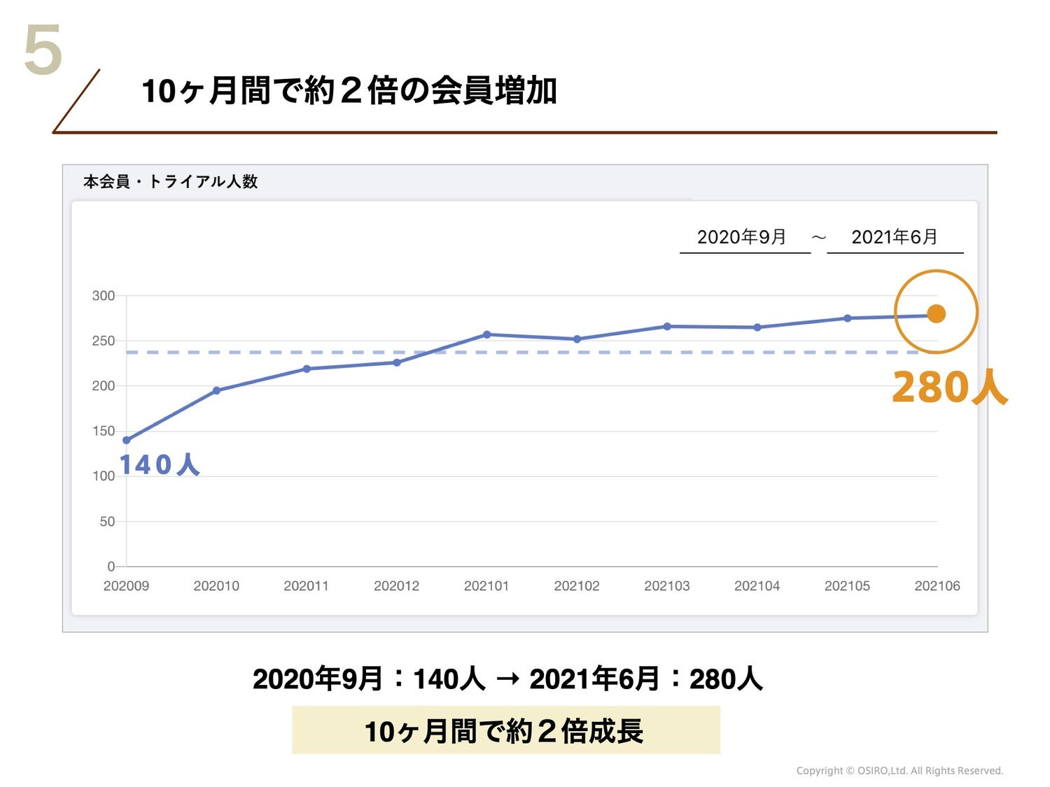 140人で始まって今は280人、この10ヶ月で倍増は本当にすごいですね!会員数も毎月コンスタントに約30人の入会があるのを見ると、集客にもいろいろ工夫があると思っています。(参照:上の図5)